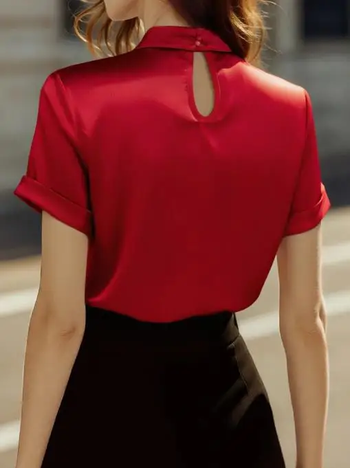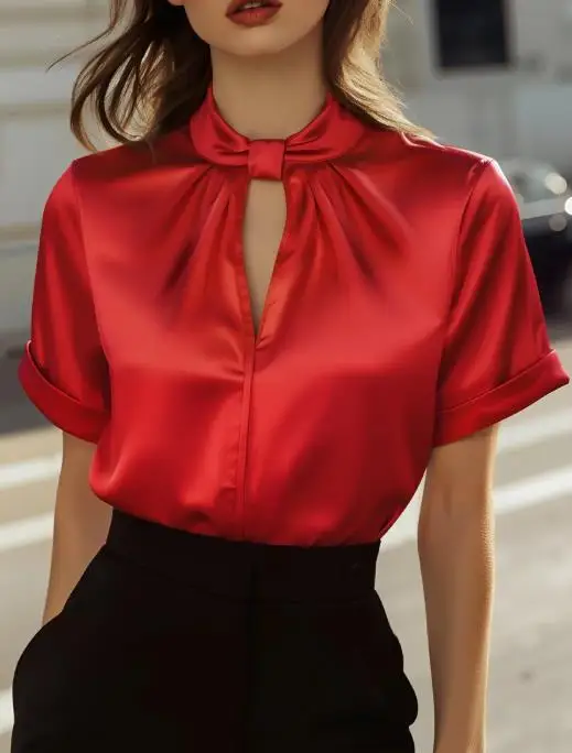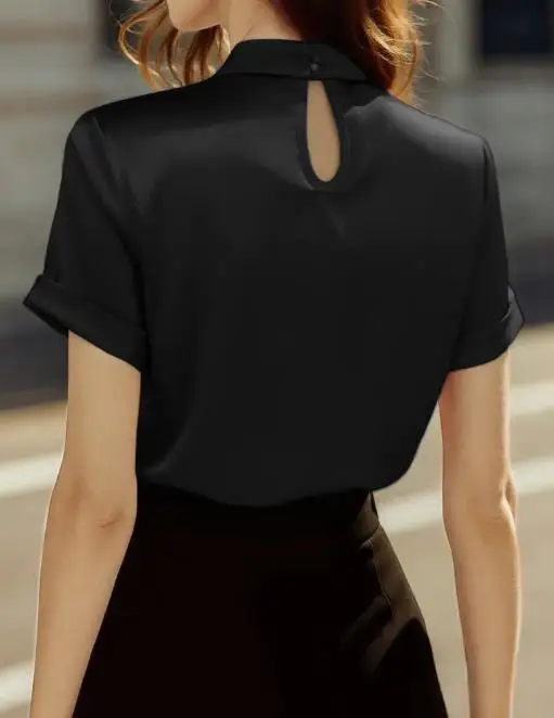 Satin Short Sleeve Shirt for Women Temperament Commuting Female Daily Clothing New Style Women's Elegant Blouses
