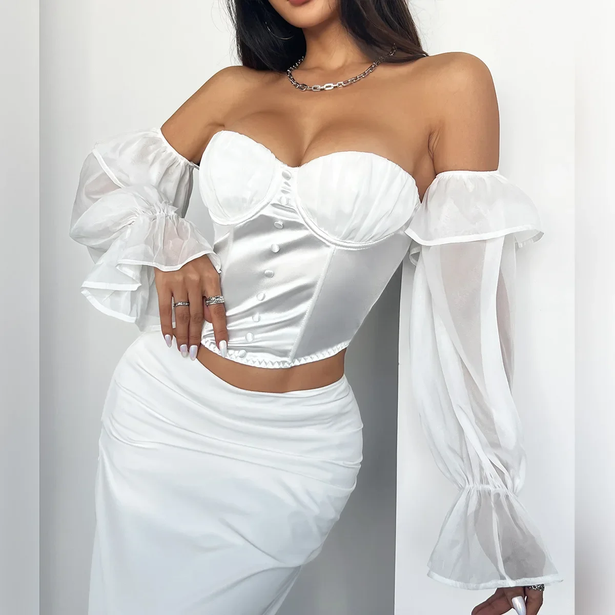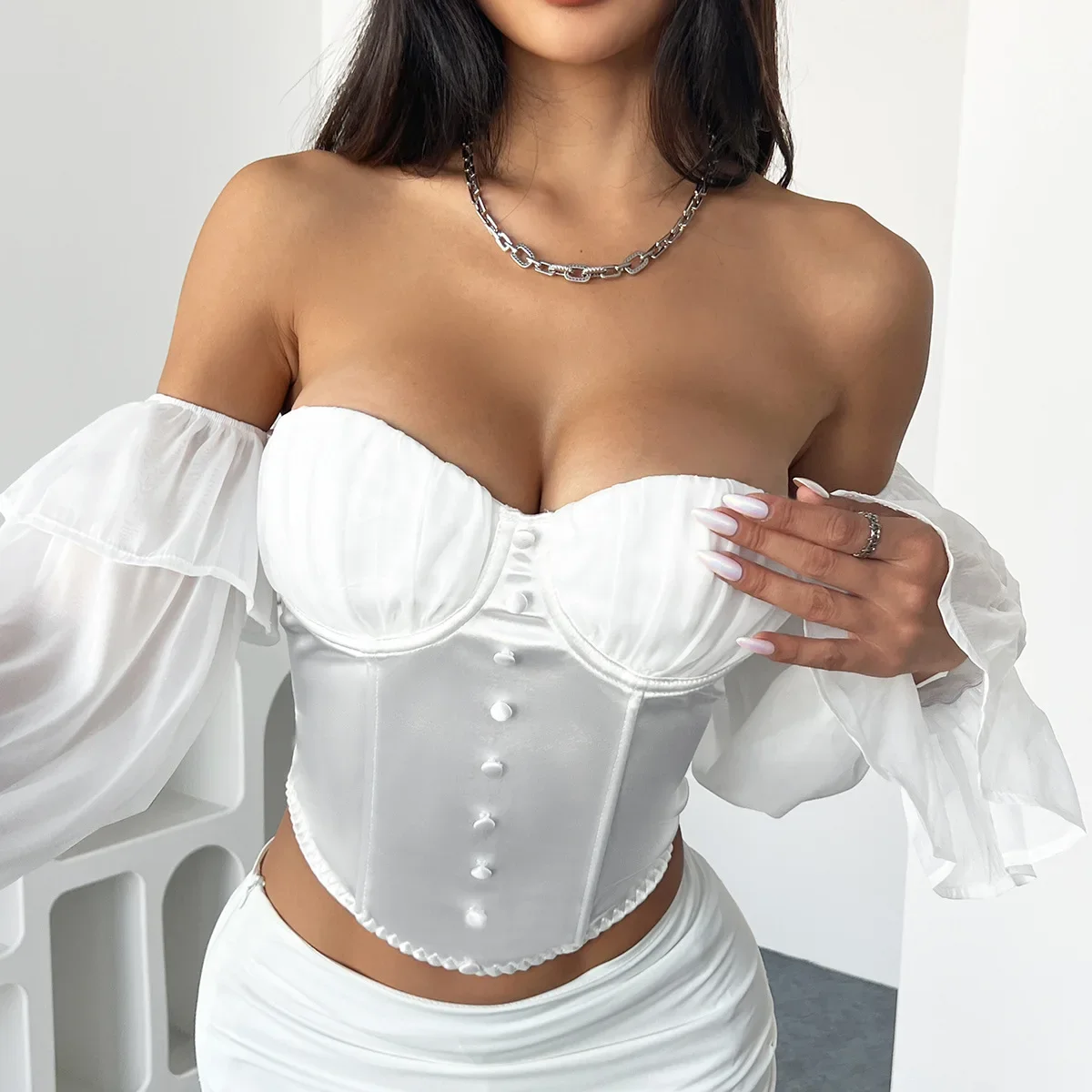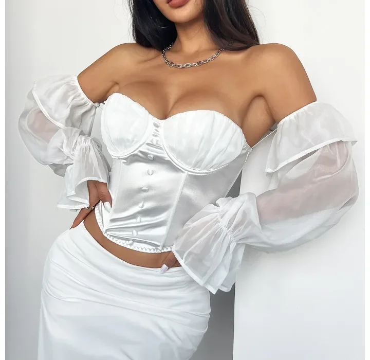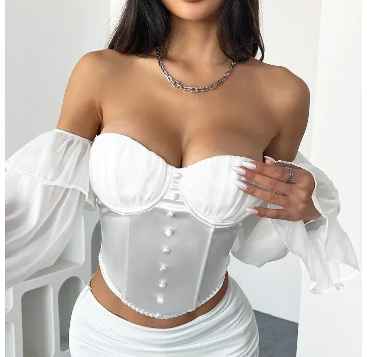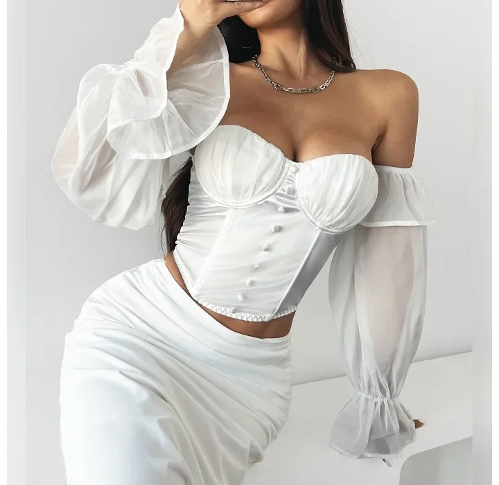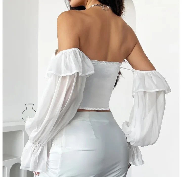 White Shirt Women Clothing Summer 2025 Retro Slim Fit with Flared Sleeves Tops Fashionable and Versatile Sexy T-shirt Streetwear